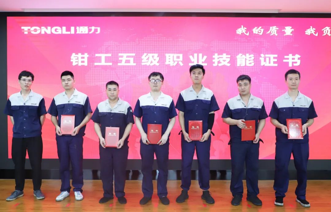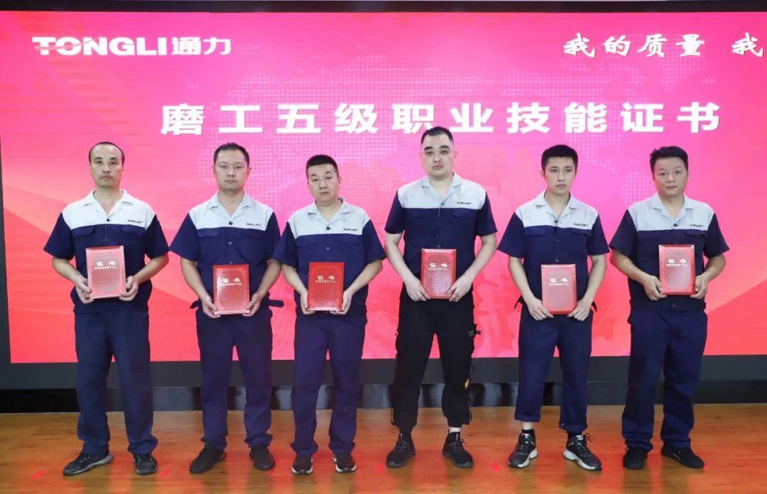 會(huì)議伊始,生產(chǎn)車間主任鄭德文、黃維鑾分別為我們21位總裝車間員工頒發(fā)鉗工五級(jí)職業(yè)技能證書及41位磨齒車間員工頒發(fā)磨工五級(jí)職業(yè)技能證書,并希望獲得證書的同事們?cè)谌蘸蠊ぷ髦欣^續(xù)提升自身工作技藝、精益求精,再創(chuàng)佳績(jī)。
