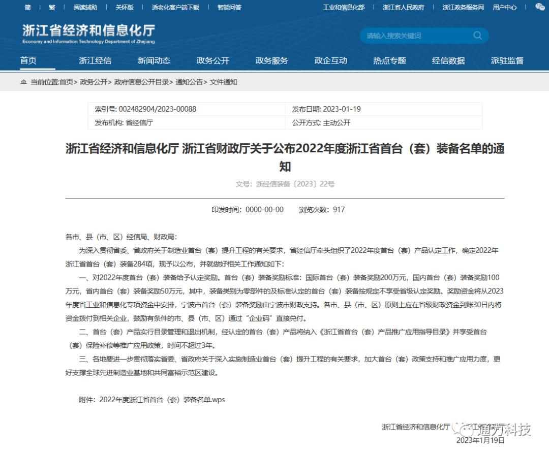 近日,浙江省經濟和信息化廳公布了2022年度浙江省首臺(套)裝備標準認定項目公示名單,隨著公示結束,通力科技的“大型運動場景快速精準驅動傳動成套裝置”正式榮獲2022年度浙江省首臺(套)裝備認定!